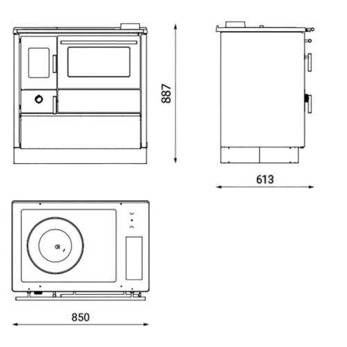 GRAN COCINA DE HIERRO FUNDIDO DE 11 KW A LEÑA – MODELO CLASICA! CARACTERISTICAS Y DATOS TECNICOS HIERRO FUNDIDO POTENCIA: 11 KW RENDIMIENTO: 82,4% METROS CALEFACTABLES: 120 M2 SALIDA DE HUMOS: 120 MM MEDIDAS DE CAMARA DE COMBUSTION: ALTO: 21CM ANCHO: 16CM FONDO: 40CM MEDIDAS DEL HORNO: ALTO: 26CM ANCHO: 45CM FONDO: 48CM FOGON SUPERIOR EN FUNDICIÓN CAJON DE ALMACENAJE TERMOMETRO PESO: 130KG MEDIDAS TOTALES: ALTO: 88.7CM ANCHO: 85CM FONDO: 61.3CM