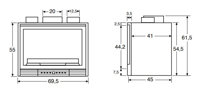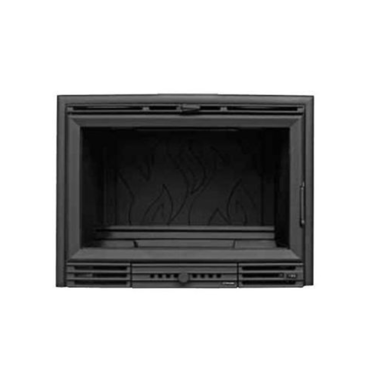 Insertable de leña modelo GV700 14 KW Características: Colores disponibles: negro Insertable fabricado íntegramente en fundición Potencia total 14 Kw Superficie calefactable 120 m² Rendimiento 92% Peso 145 Kg. Dimensiones 55×69’5×45 cm. (alto x ancho x fondo) Salida humos 200 mm. Cristal vitrocerámico 750°C Sistema de cristal limpio regulable Ventiladores con dos velocidades Termostato de seguridad Dos conductos laterales de salida de aire caliente de 125 mm. ø Dos cortatiros: fijo y regulable Interior placas de fundición